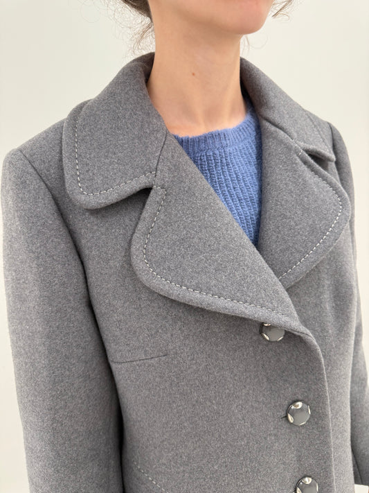 Palton old vintage anii 60 de colecție în stil Balenciaga din lana structurată