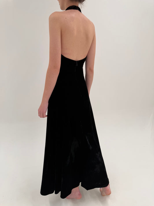LBD old vintage maxi de colecție ani 60 târzii cu spate decupat din catifea