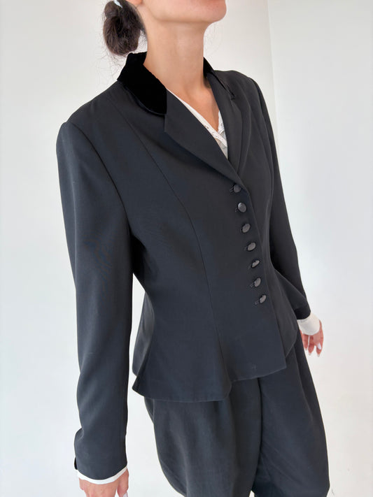 Sacou old vintage negru ultra cambrat în stil Dior din lana extrafina