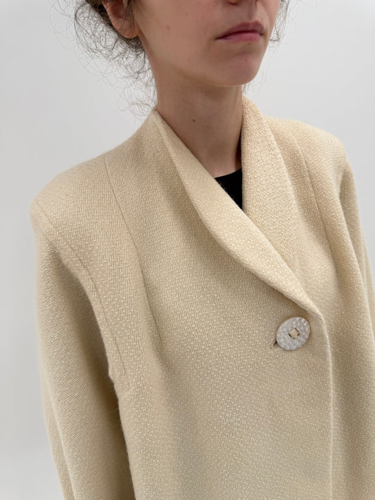 Jacheta old vintage anii 80 din lână texturată tip granité butter nude