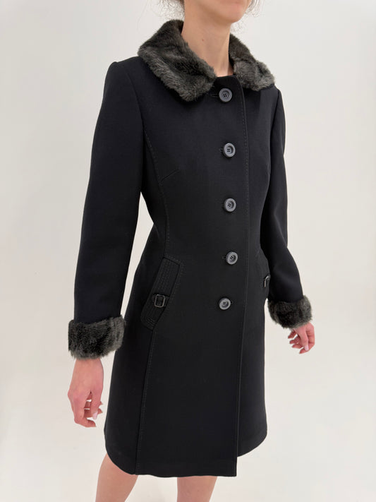 Palton vintage negru elegant din felted wool cu ținuta în croi cambrat