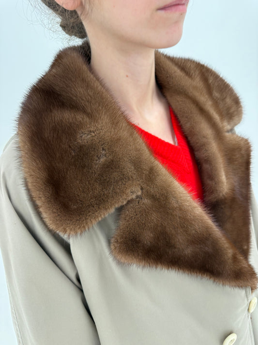 Trench luxury de iarnă cu interior din blană naturală și guler de nurcă
