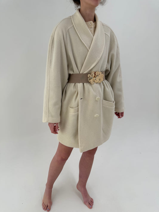 Palton vintage off white din stofă extrafina și moale de lana cu revere rotunjite