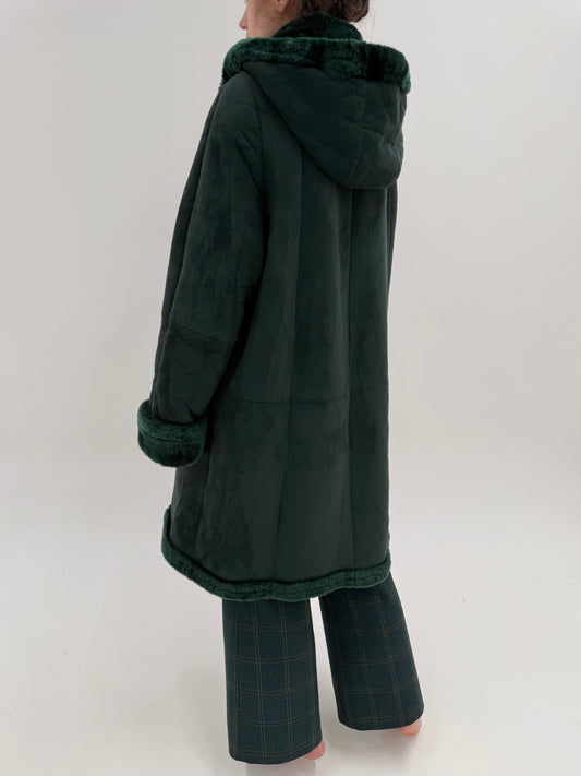 Duffle coat din shealring eco forest green cu glugă detașabilă