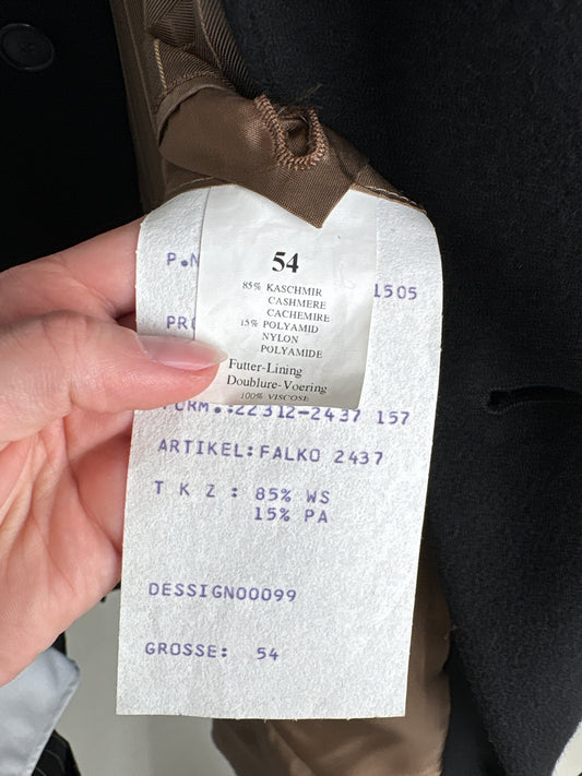 Palton negru din stofă 100% cașmir cu talie reglabilă din cordon