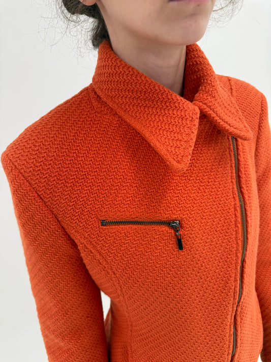 Jacheta cambrata oranj din tweed texturat superb din lana extrafina