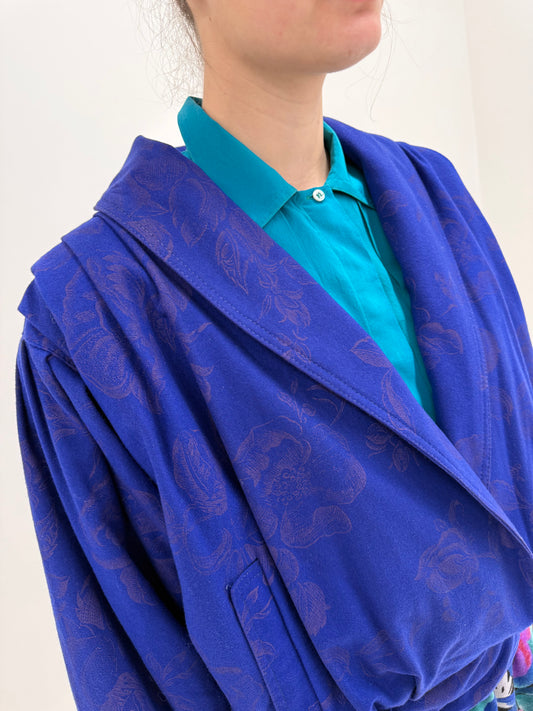 Jacheta vintage Bomber în croi drapat indigo blue din lanita extrafina