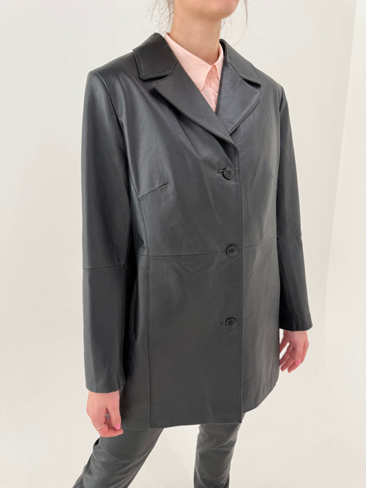 Sacou lung din piele naturală și xtrem de fină și moale în croi ușor cambrat