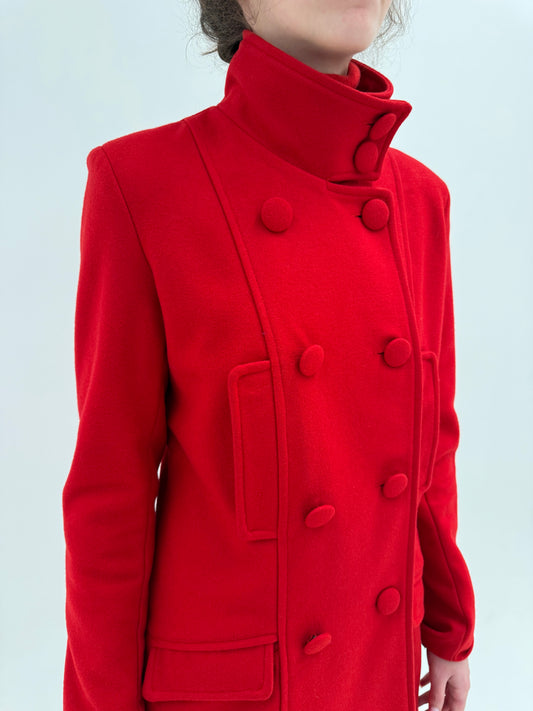 Palton cherry red din stofă ușor structurată cu închidere dublă