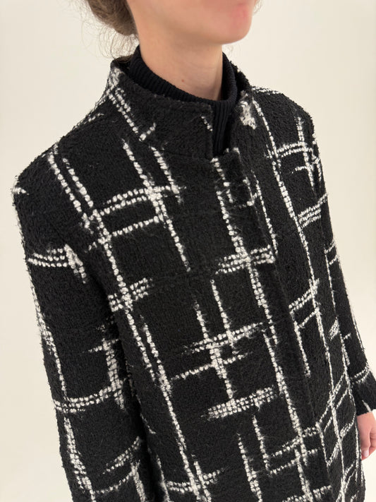 Palton italian petite în stil Chanel din boucle plin de lana alb negru
