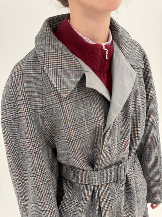 Palton vintage tip trench cu 2 fete una din lana și una din gabardină