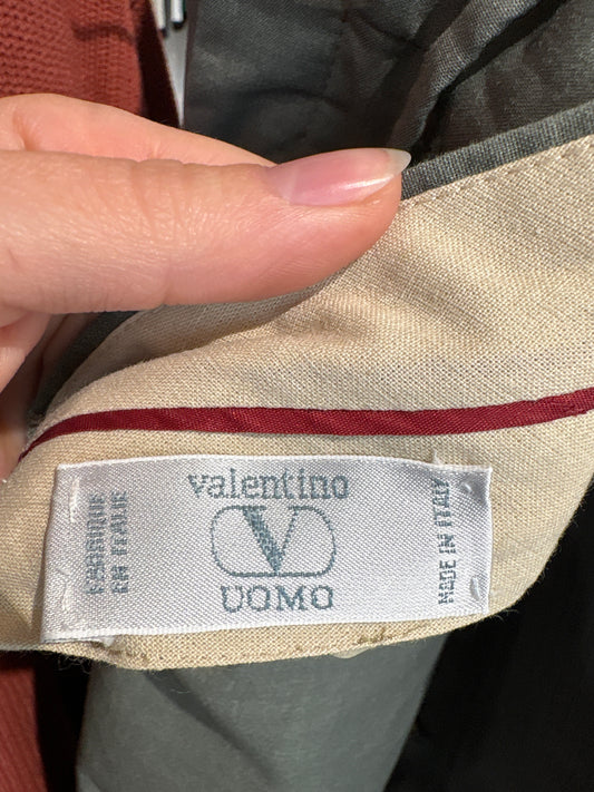 Pantaloni vintage Valentino cu pense din lana extrafina Sage green