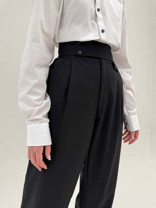 Pantaloni de ocazie cu talie ultra ultra înaltă negri din lana extrafina