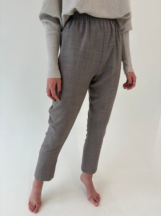 Pantaloni warm gray cu talie ultra înaltă elastică din stofita