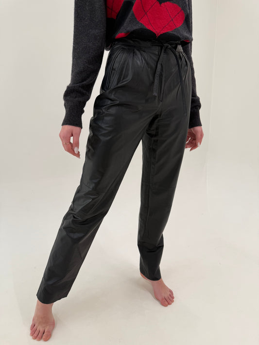 Pantaloni din piele naturală moale petite cu talie ultra înaltă și pense