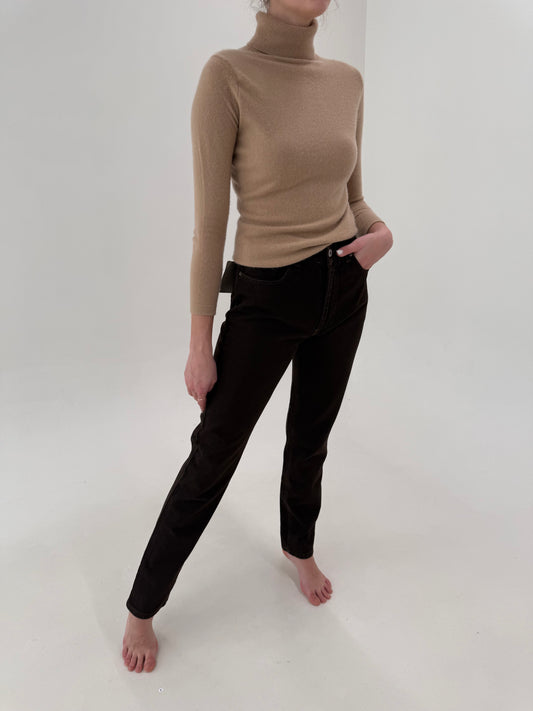 Pantaloni luxury Les Copains camel din lanita extrafina subțire confort mom fit
