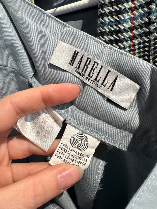 Pantaloni dusty baby blue Marella by Max Mara cu talie ultra ultra înaltă