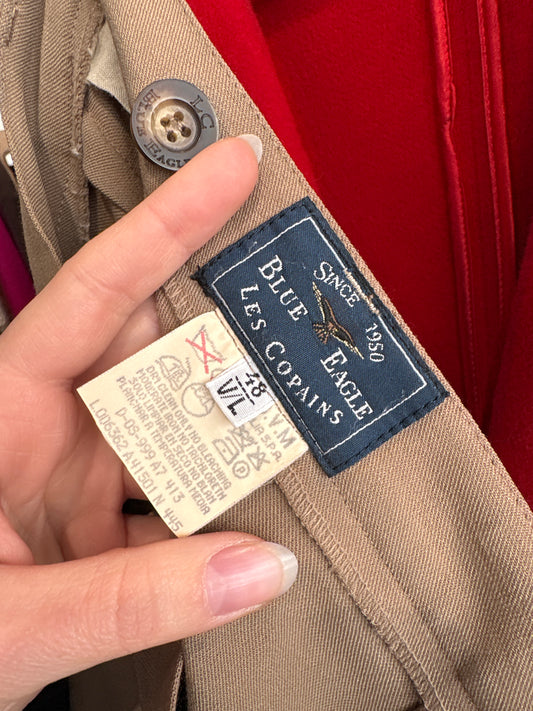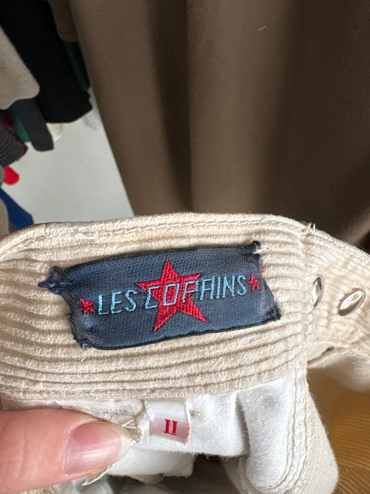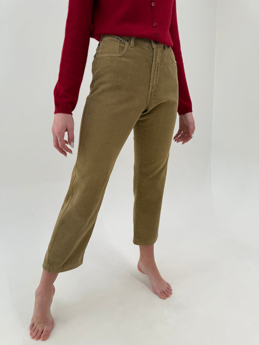 Pantaloni vintage petite de brand luxury Les Copains din corduroy nude cu talie ultra înaltă