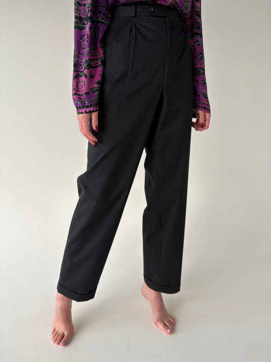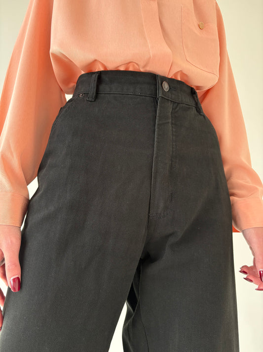 Pantaloni tall negri cu pense și talie ultra înaltă din bumbac moleskin gros