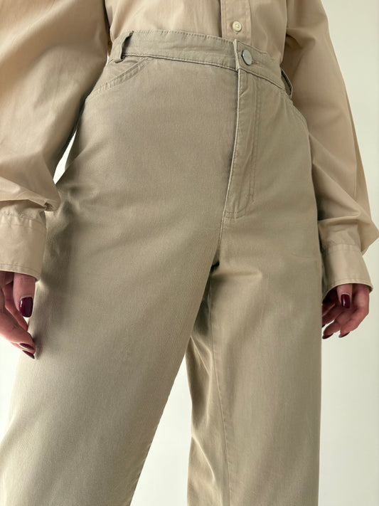 Pantaloni camel din twill din mix de lana extrafina cu talie înaltă