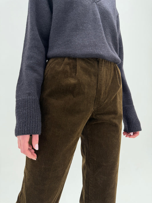 Pantaloni vintage petite butter white din corduroy cu talie ultra înaltă mom fit