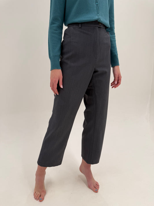 Pantaloni petite cu manșetă și dungi fine verticale din stofita strech