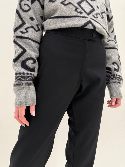 Pantaloni negri petite plus size din stofă ultra confort de lana extrafina