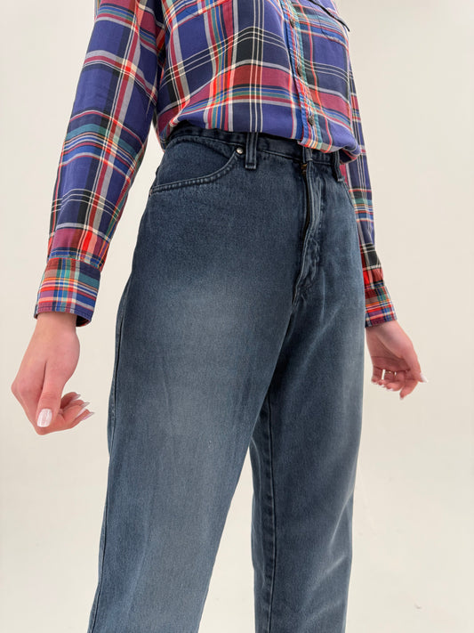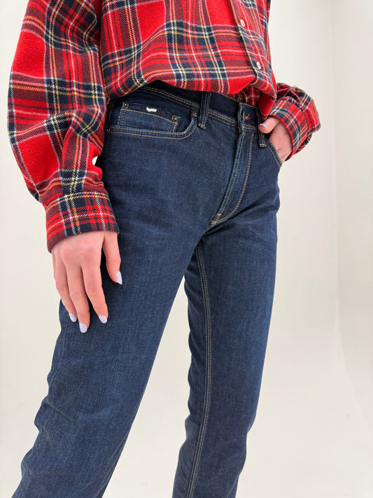 Jeans vintage dark wash tall americani din bumbac gros cu talie ultra înainta