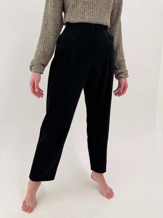 Pantaloni negri din catifea cu talie ultra înaltă mom fit de la zi la seară