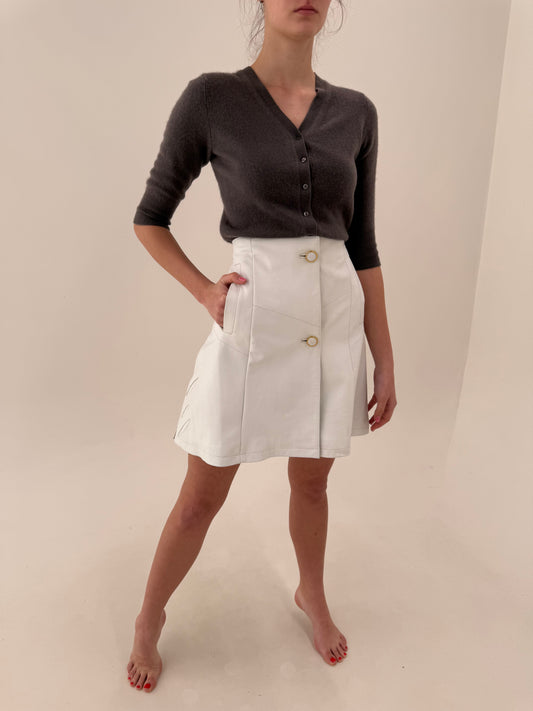 Set din piele naturală extrem de moale cu jachetă cropped off white