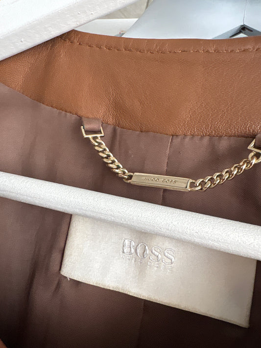 Geacă Hugo Boss cambrata din piele extrem de moale în croi feminin minimalist