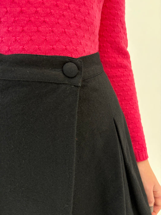 Fustă neagră mini plisată parte peste parte din lana pura extrafina