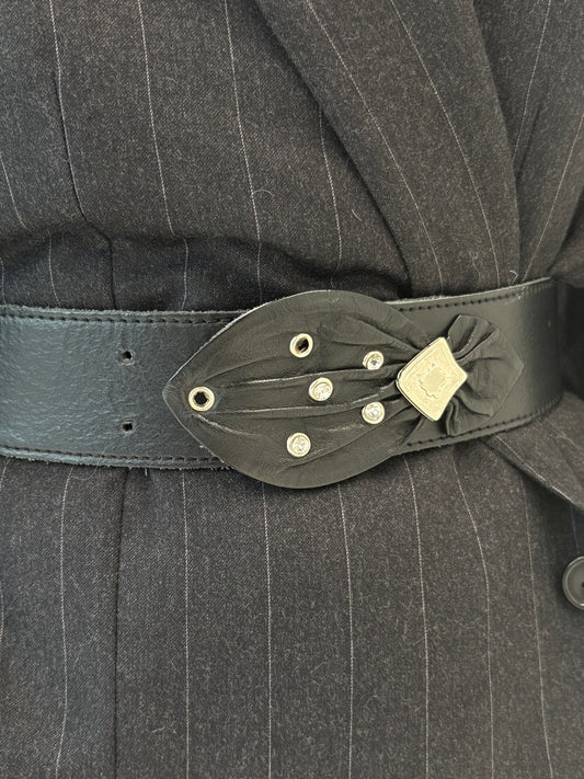 Centura vintage din piele naturală neagră extrafina cu feronerie argintie