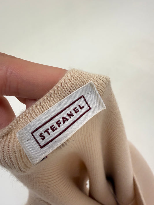 Pulover nude cambrat Stefanel din lana extrafina de gramaj mare