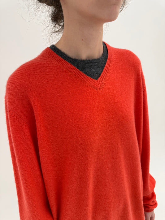 Pulover din cașmir high end cu layering fals oranj cu charcoal gray