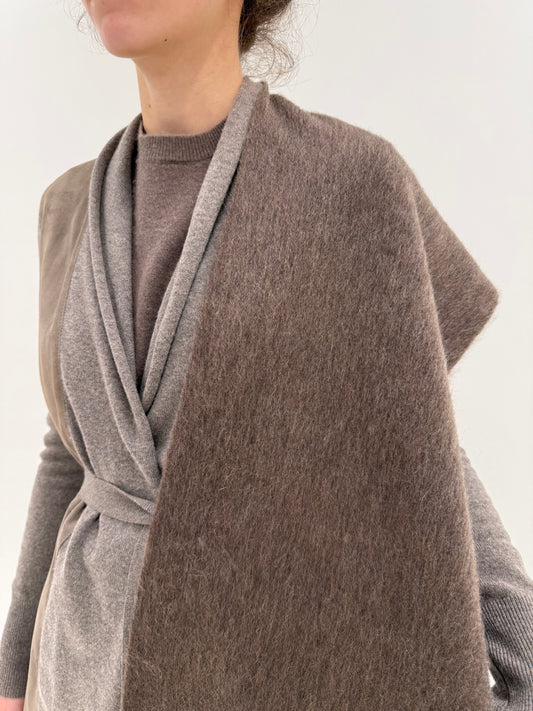 Fular XL în carouri nude și chocolate brown din lana extrafina și cașmir
