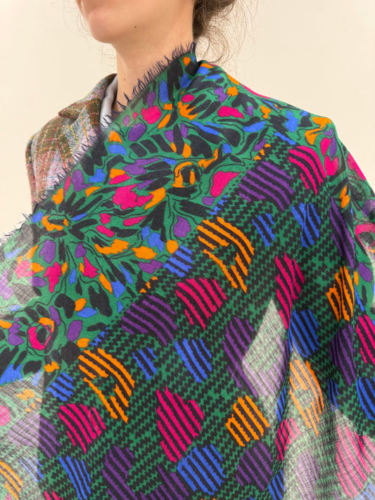 Shawl XXXL gros din cașmir oranj și camel Chevron