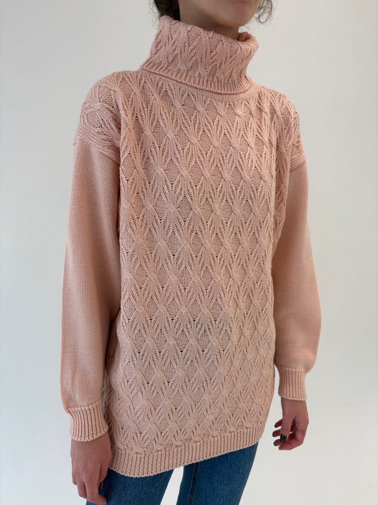 Cardigan vintage în croi lejer și culori pudrate din lana extrafina de gramaj mare