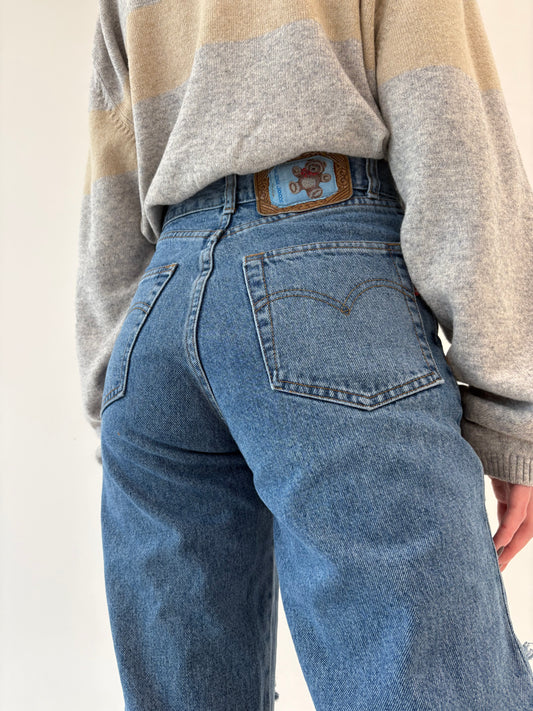 Pantaloni premium din corduroy jeans blue și camel în croi drept