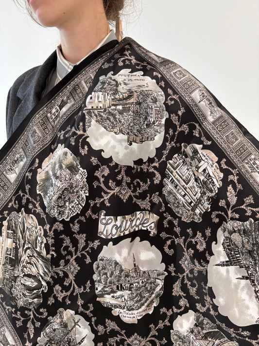 Eșarfă din mătase naturală în nuanțe de gri și negru