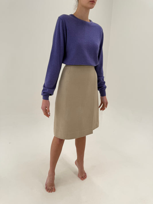 Fustă petrecută light nude din stofita de lana extrafina cu fața dublă
