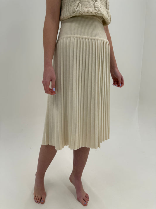 S/M-M/LStoc epuizatFustă plisată cu talie ultra marcată și ultra înaltă din tricot de lana extrafina