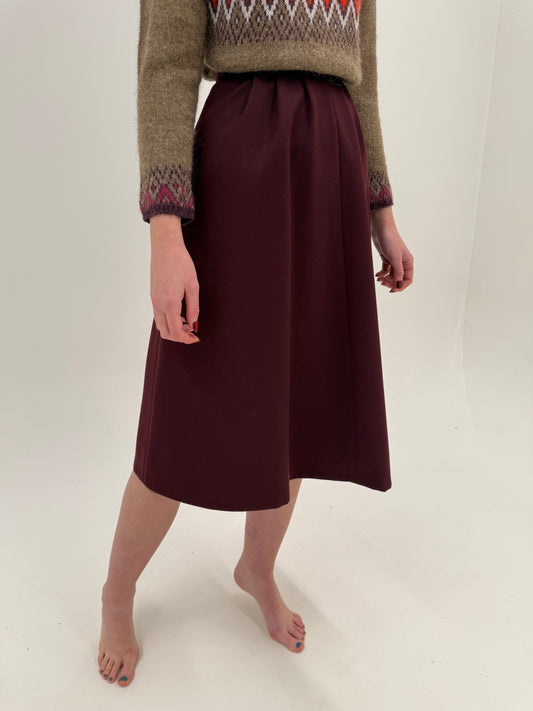 Fustă vintage burgundy din lana plină extrafina în croi amplu cu talie ultra înaltă