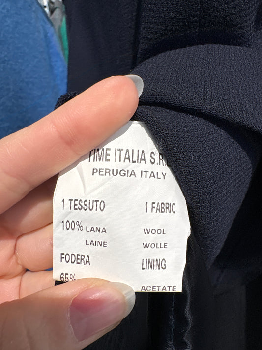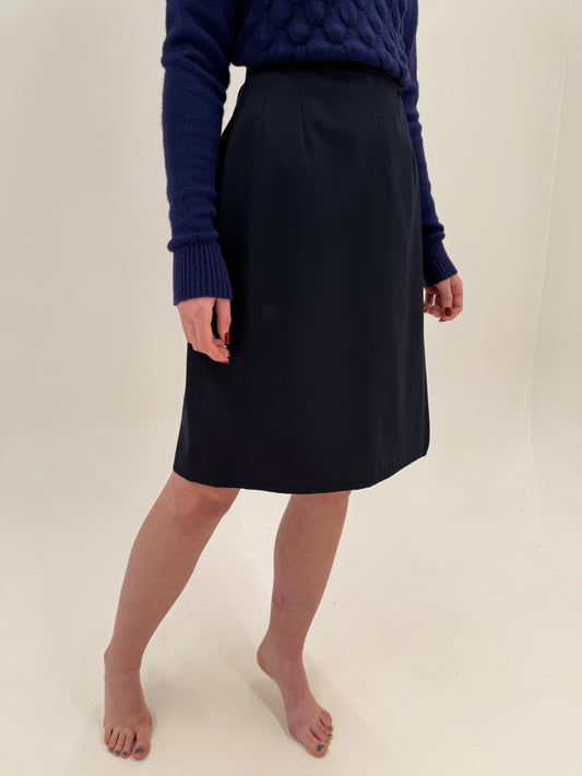 Fustă midi vintage plisată Navy blue din lana extrafina