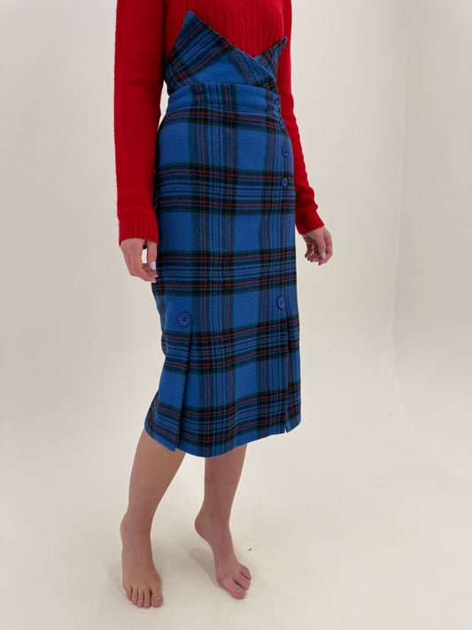 Fustă spectaculoasă cu talie ultra ultra înaltă din Tartan gros 80% lana
