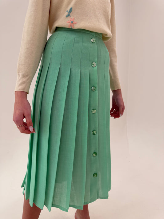 Fustă vintage midi spre maxi plisată mint green din lanita extrafina