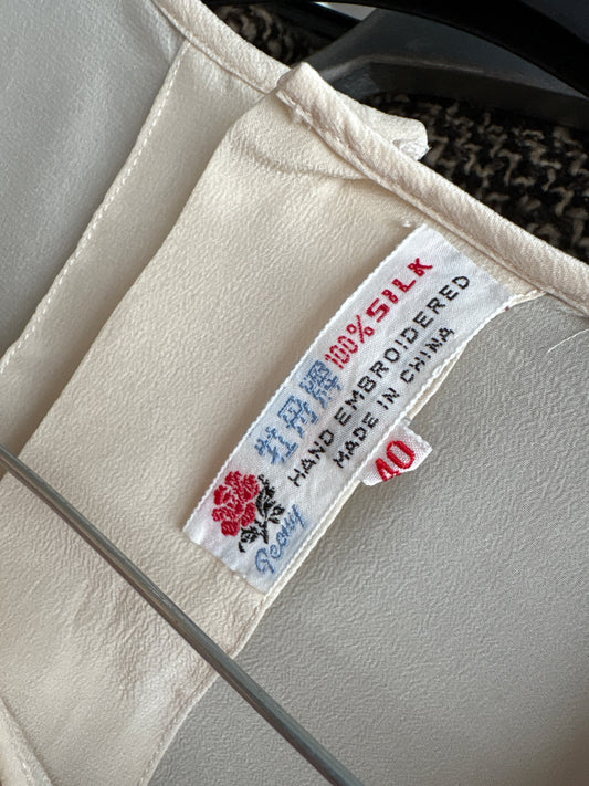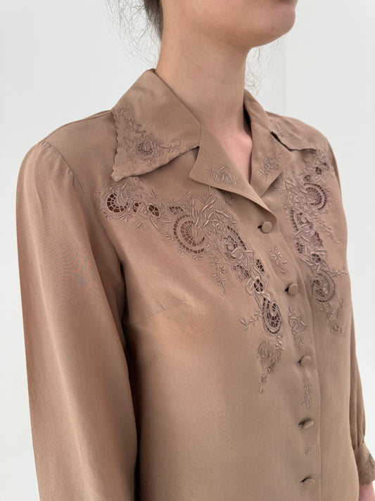 Cămașa vintage luxury brodată manual din mătase naturală care au lait