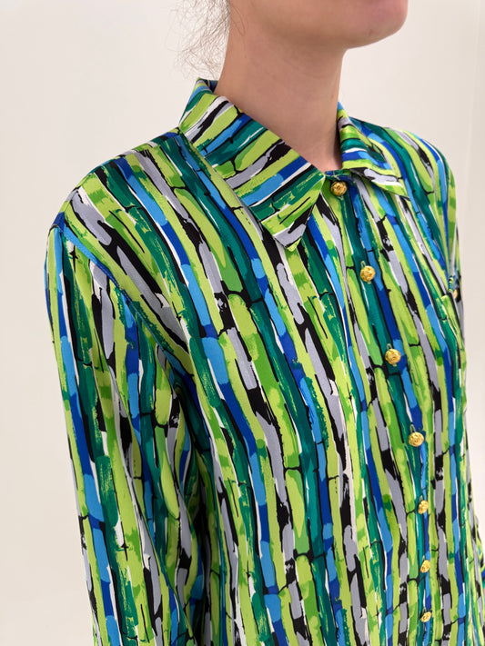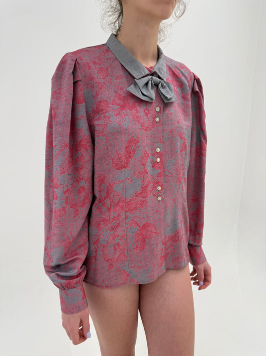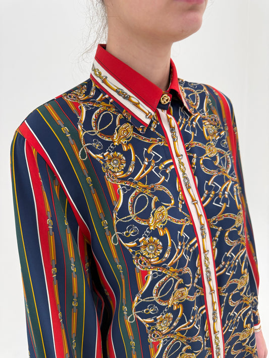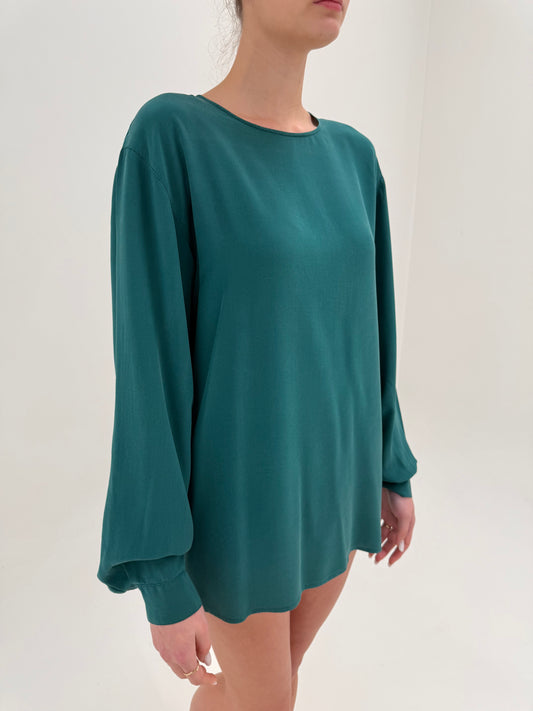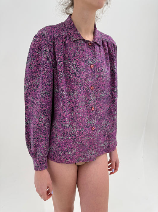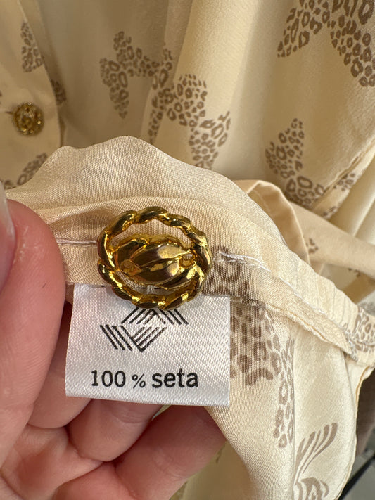 Cămașa vintage din mix de mătase natural in croi amplu și mâneci ușor bufante