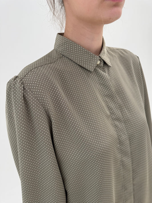 Cămașa vintage Sage green cu buline albe din material ușor satinat