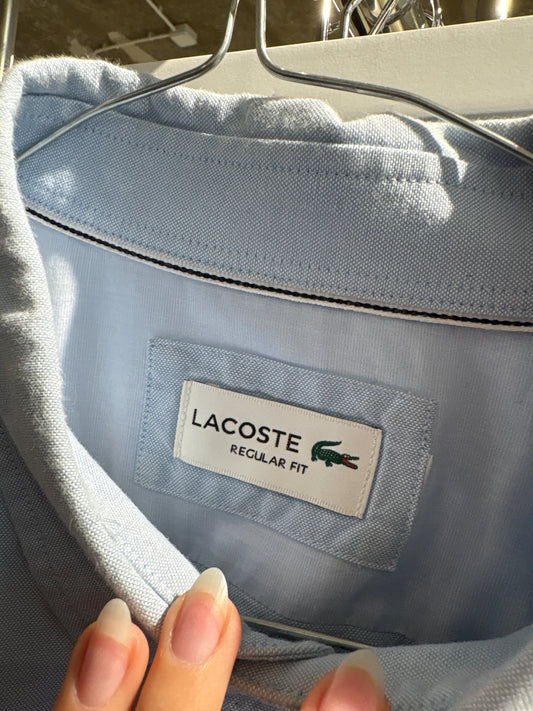 Cămașa Locoste button down baby blue din poplin gros de bumbac texturat